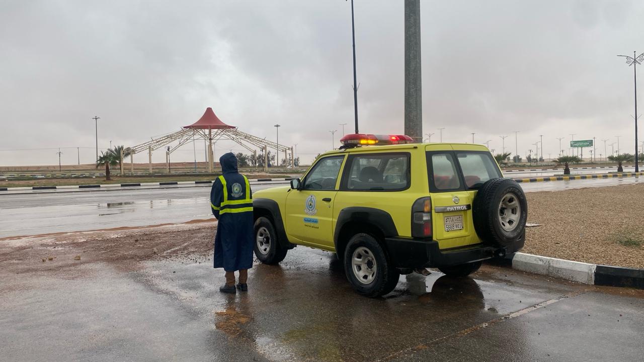 الدفاع المدني في محافظة العويقيلة يتابع الحالة المطرية