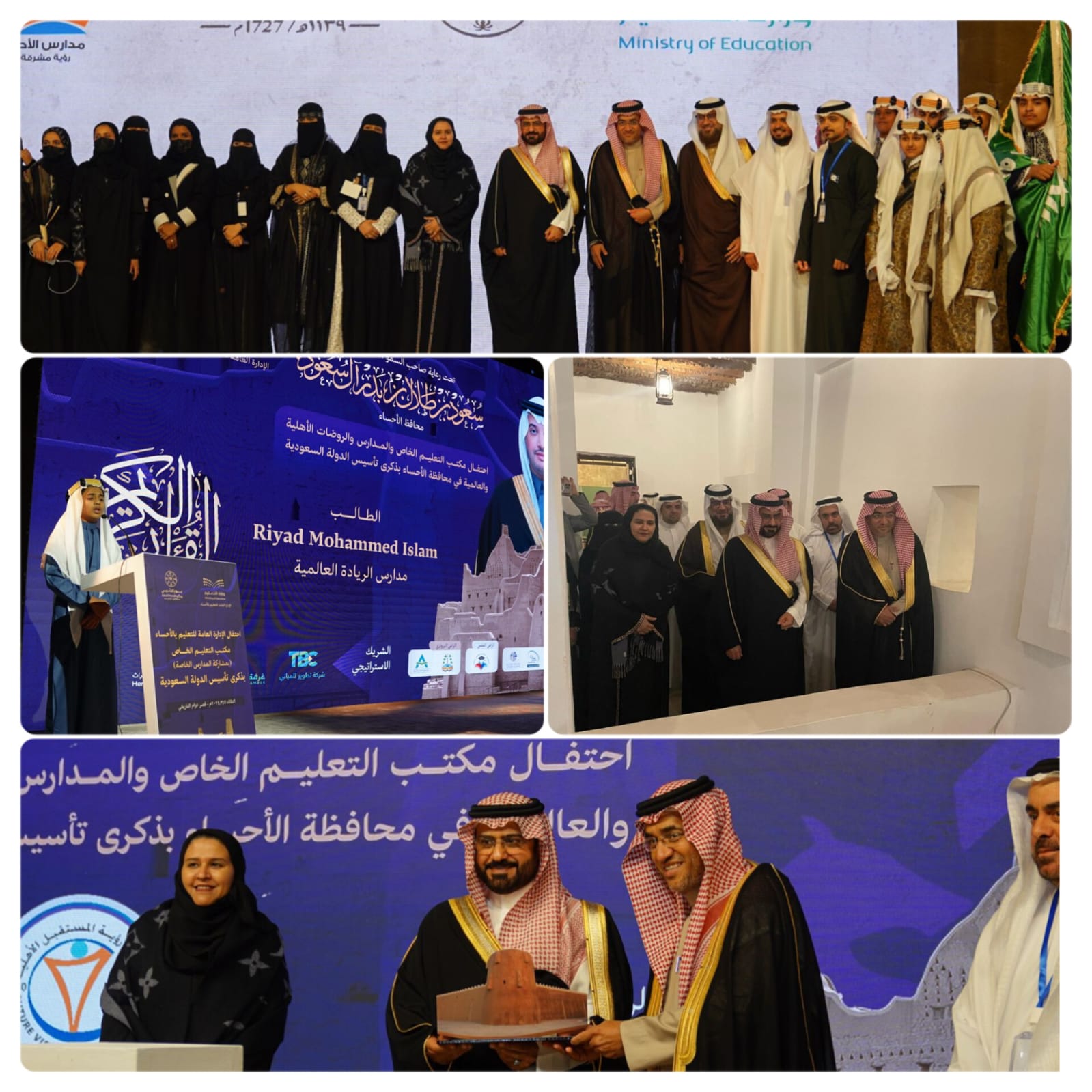 تحت رعاية صاحب السمو الملكي الأمير سعود بن طلال بن بدر محافظ الأحساء ، شهد سعادة وكيل محافظة الأحساء الأستاذ معاذ بن إبراهم الجعفري ، أمس ” الثلاثاء” حفل فعالية الاحتفاء بيوم التأسيس والتي نفذها مكتب التعليم الخاص بالإدارة العامة للتعليم بالأحساء والذي أقيم بقصر خزام التاريخي ، بحضور المشرف العام على وكالة التعليم الخاص بوزارة التعليم الأستاذة عواطف الحارثي و مساعد مدير عام تعليم الأحساء للشؤون التعليمية الدكتور عبدالرحمن الفلاح وعدد من مسؤولي الجهات الحكومية والقطاع الخاص ، وبمشاركة طلاب وطالبات 50 مدرسة خاصة.