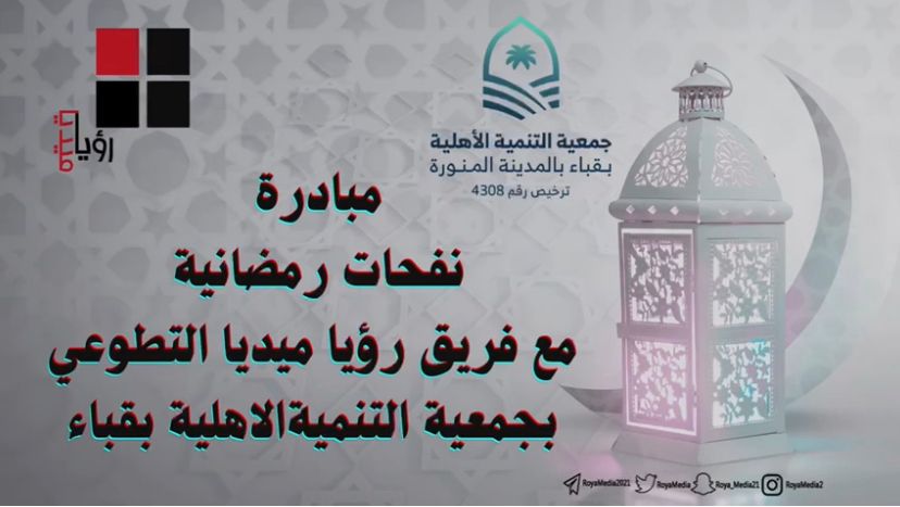 مع إطلالة شهر رمضان المبادرة ، أطلق فريق رؤيا ميديا الإعلامي التطوعي بجمعية التنمية الأهلية بقباء بالمدينة المنورة ، مبادرة إعلامية عبر الإعلام الجديد وهي إحدى مبادرات الفريق للعام 2024 ، ويشارك فيها معظم أعضاء الفريق بمختلف تخصصاتهم في عدة مجالات ،