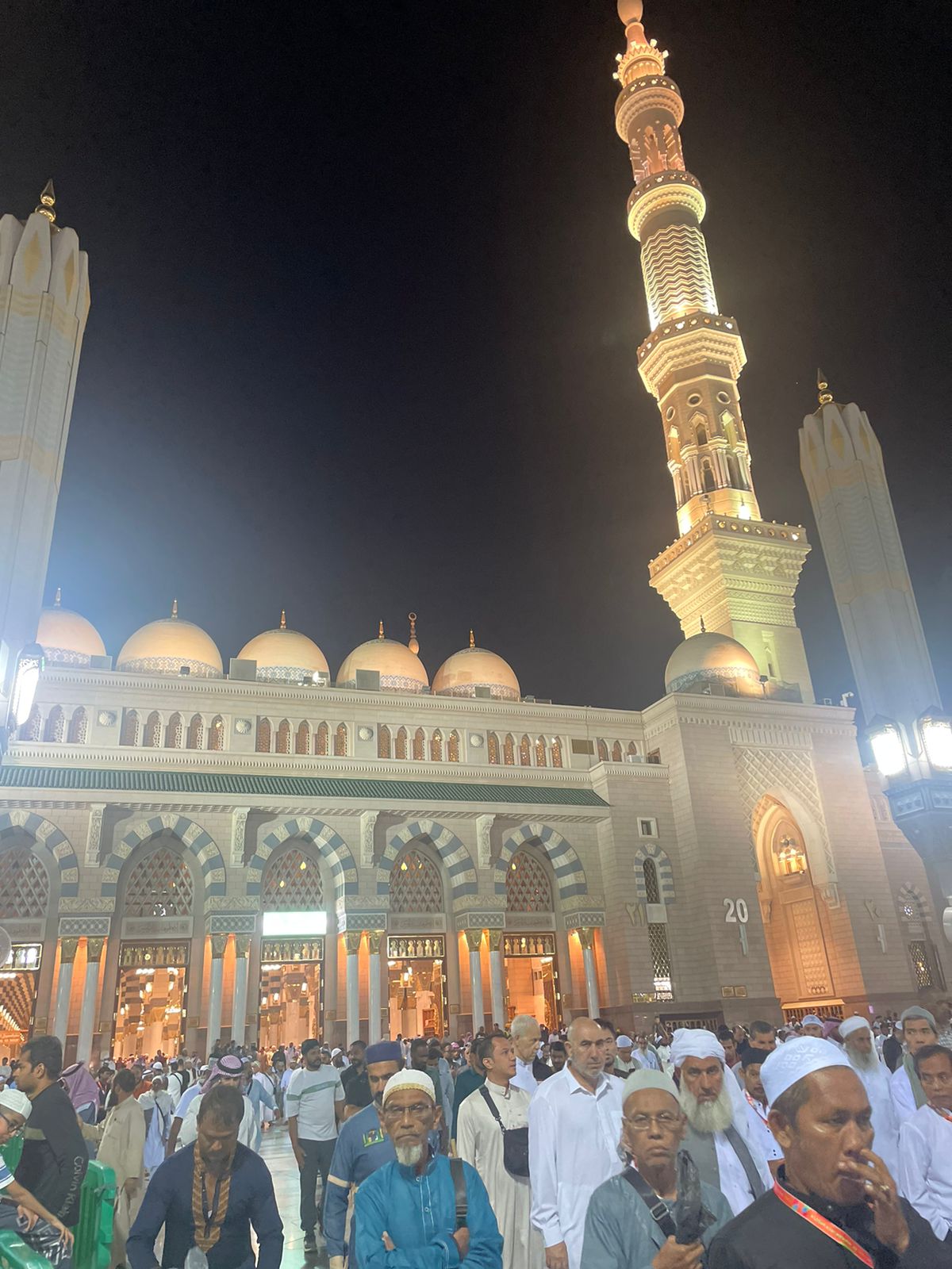 مدينة سكنها حبيبنا الرسول المصطفى ووضع بركته في المدينة المنورة وترك بصمة الكرم والحب لزوار هذا المسجد والروح التعاونية من الفرق التطوعية وحملات الإفطار .