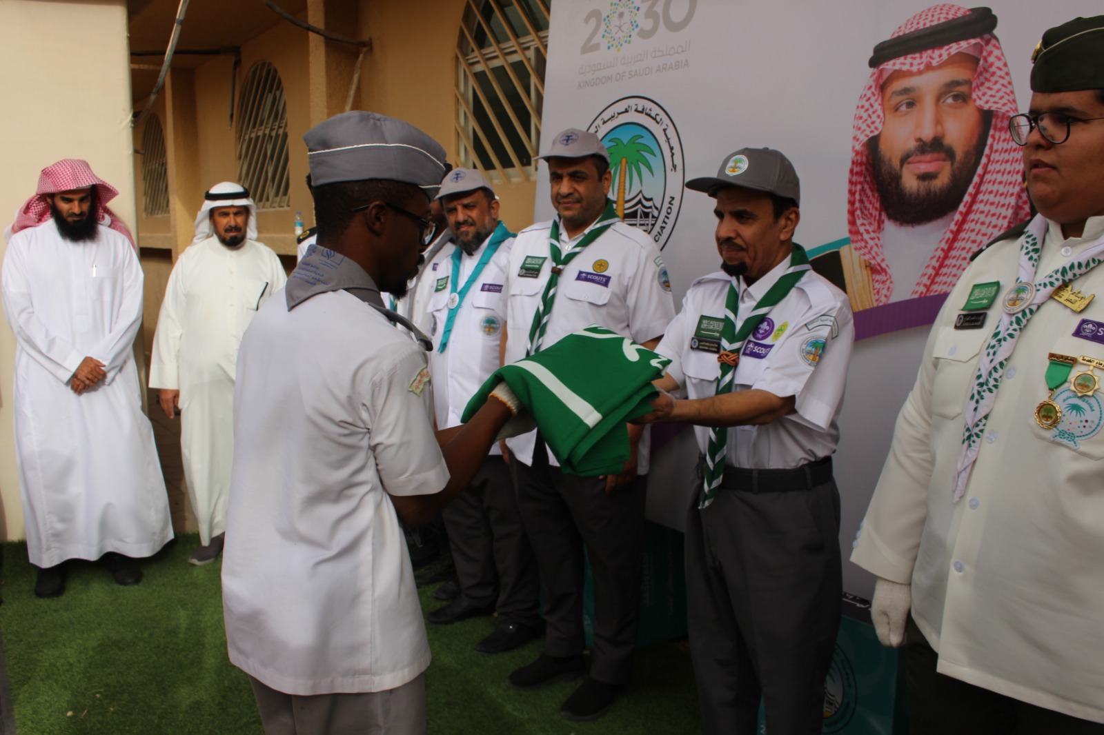 كما تضمن الاحتفال عرض فيديو يروي حكاية “العلم السعودي” عبرَ ثلاثة قرون، متضمناً مراحل تطور العَلَم، وتاريخه، وعناصره، وبروتوكولات استخدامه، كما تضمن العرض نماذج من الفعاليات التي تنفذها الوحدات الكشفية وعشائر الجوالة فيما يخص العلم الوطني في مختلف المناسبات والتي تسعى الجمعية من خلاله إلى تعزيز قيمة العلم الوطني لدى منسوبي الكشفية، والتأكيد على رمزيته التي تُشكل كل معاني وقيم الوفاء والانتماء والولاء والاعتزاز والوحدة الوطنية.