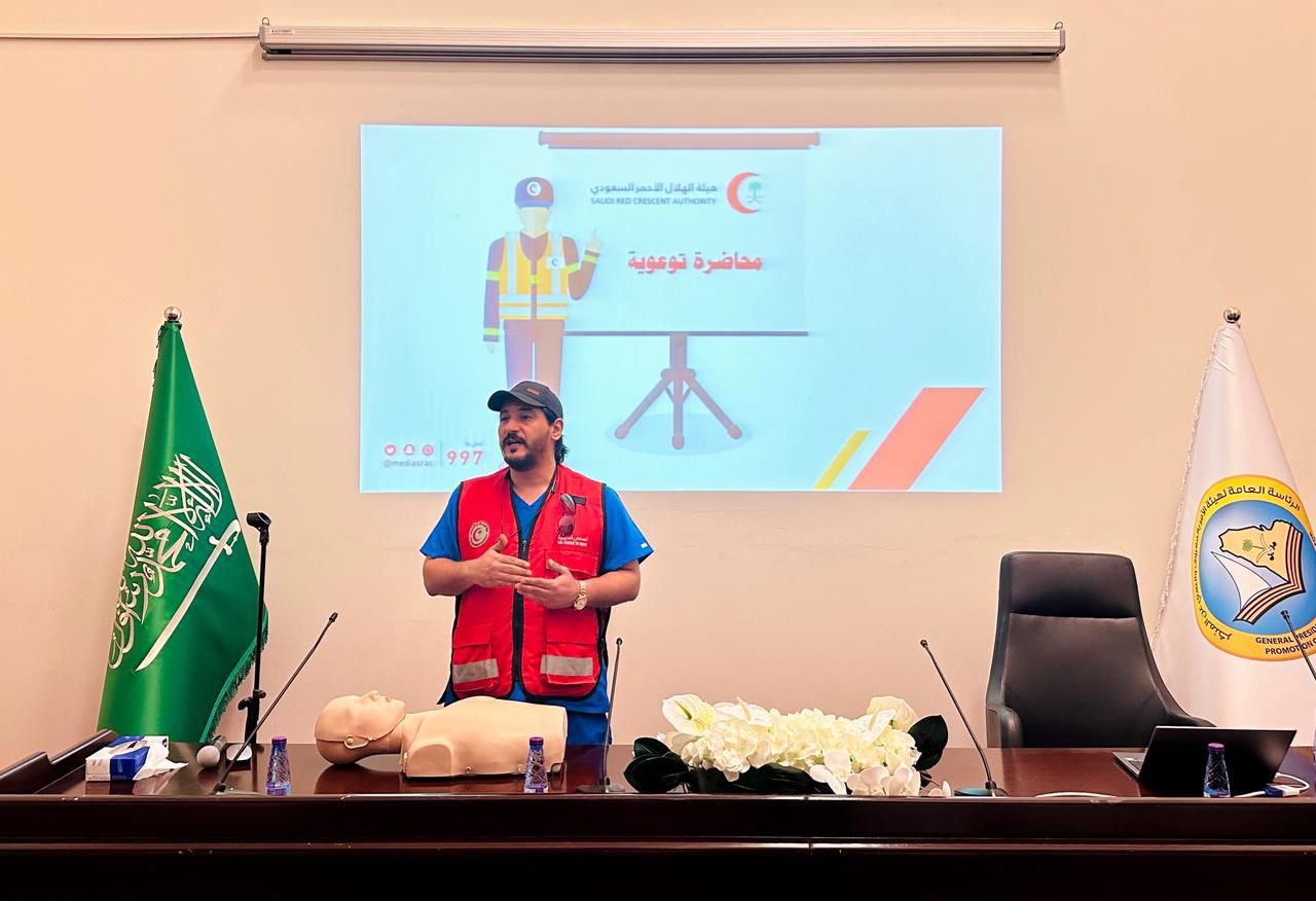 أقام فرع الرئاسة العامة لهيئة الأمر بالمعروف والنهي عن المنكر بالمنطقة الشرقية بالتعاون مع هيئة الهلال الأحمر السعودي بالمنطقة لقاءً تثقيفياً بعنوان ( أساسيات الإسعافات الأولية)