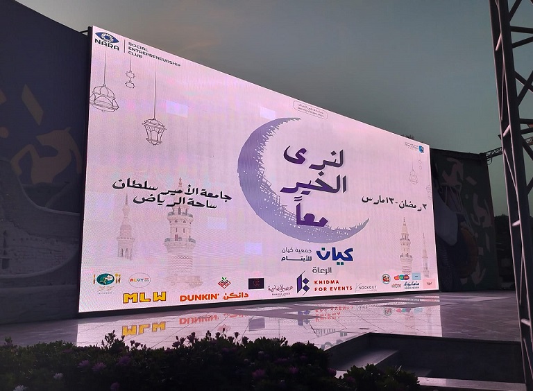 احتضنت جامعة الأمير سلطان بن عبد العزيز بالتعاون مع نادي “نرى” أبناء جمعية “كيان” للأيتام على مائدة الإفطار في جو حميمي توفرت به كل الإمكانات التي تدخل السعادة على قلوب المستفيدين، حيث استمتع الجميع وأسرهم بالليلة الرمضانية الجميلة والحميمة التي نظمها نادي “نرى” بالتعاون مع جمعية كيان للأيتام ذوي الظروف الخاصة.