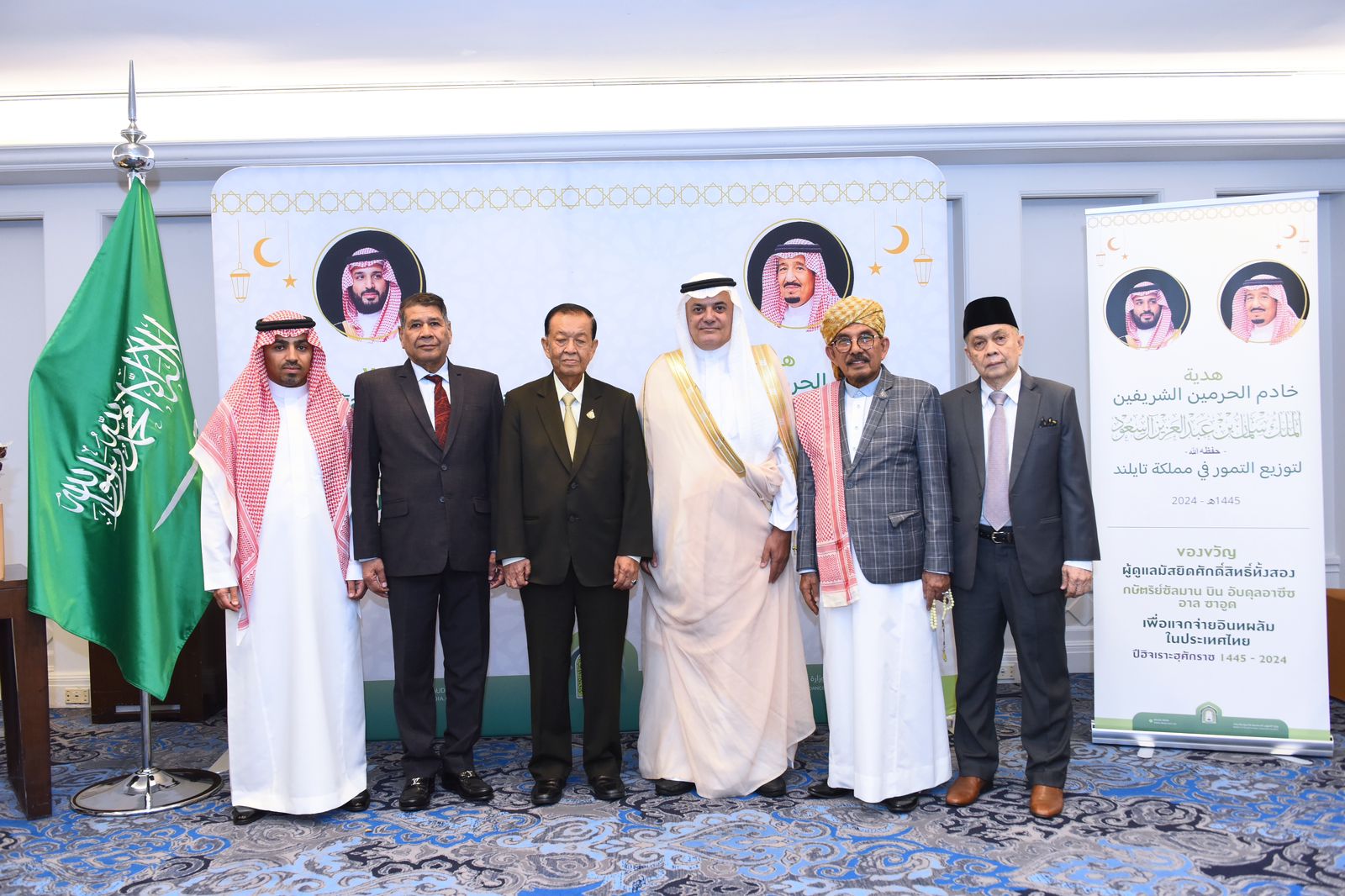 دشنت وزارة الشؤون الإسلامية والدعوة والإرشاد، ممثلة بالملحقية الدينية بسفارة المملكة في تايلاند، اليوم، برنامجي خادم الحرمين الشريفين لتوزيع التمور وتفطير الصائمين خلال شهر رمضان المبارك 1445هـ، بفندق سيام أنانتارا بالعاصمة التايلاندية بانكوك، بحضور سفير خادم الحرمين الشريفين الأستاذ عبدالرحمن بن عبدالعزيز السحيباني، والملحق الديني بالسفارة المكلف الأستاذ ماجد بن محمد الضعيان، ورئيس البرلمان التايلاندي السيد وان محمد نور ماهتا، ونائب شيخ الإسلام الشيخ شريف سي جرونيج، وسعادة الأمين العام للمجلس المركزي الإسلامي الجنرال سؤرين بلاريه، وعدد من سفراء الدول العربية والإسلامية، والشخصيات الإسلامية البارزة.