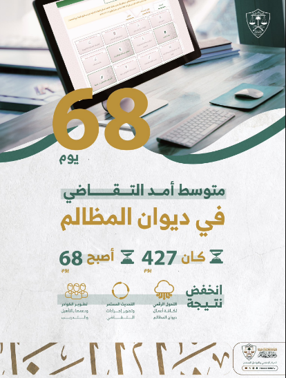 قلص ديوان المظالم متوسط أمد التقاضي إلى 68 يومًا مع بداية العام 2024م.