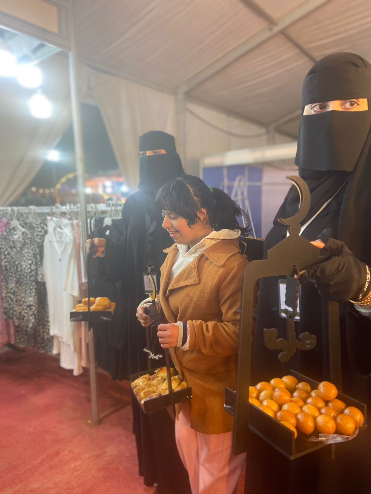 وفي الختام تجول منسوبو الجمعية بقيادة الأستاذة: وفاء الهزيمي والأستاذة: مروة جميل بالمهرجان لتوزيع الحلويات بأيدي أطفال متلازمة داون.