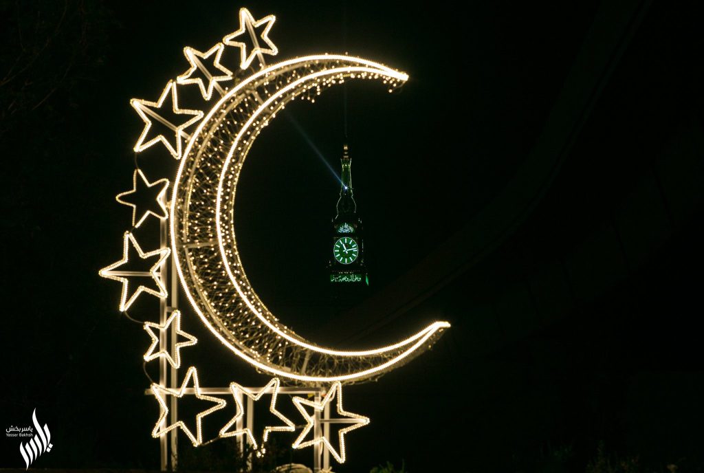 3. الإنارة والتزيين بـ”المصابيح والقناديل” أو “الكشاف”: عادة حجازية قديمة لاستقبال شهر رمضان بإضاءة المساجد، والشوارع، كما أن الحجازيين يستعدون بلبس (العمة الحجازية) التي تمتاز بالعمامة، والإزار على الكتف.