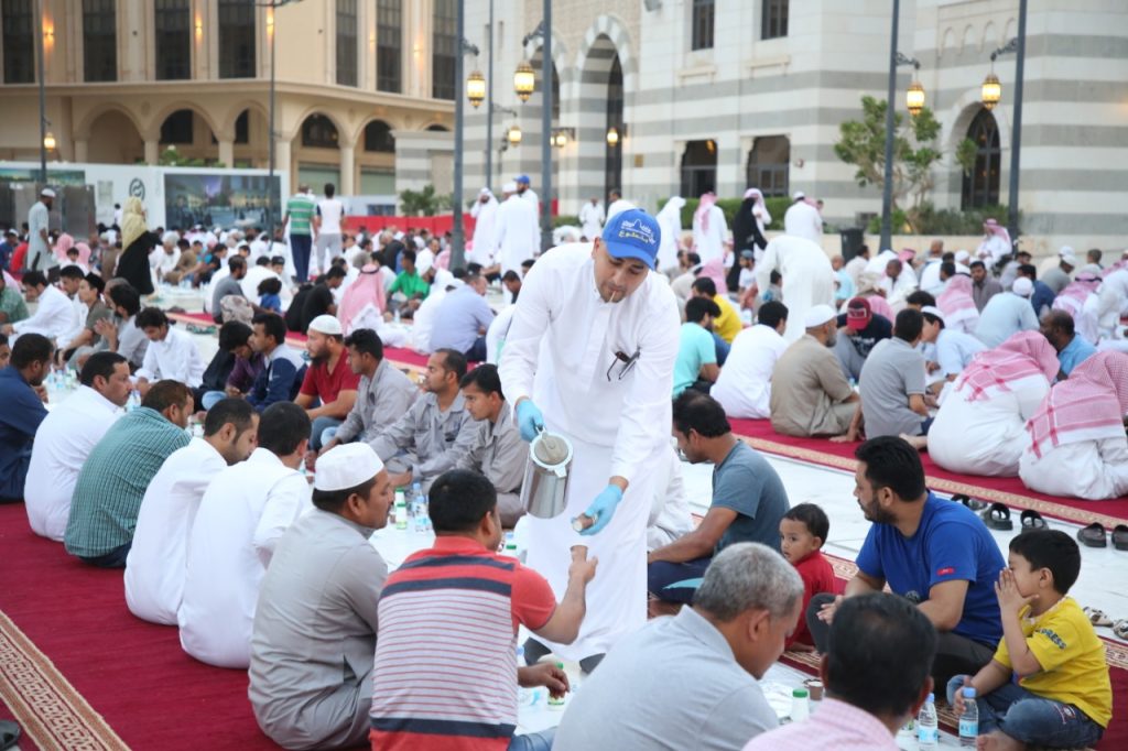2. إفطار المساجد والجيران: تتباهى النساء الحجازيات بتبادل الأطباق الرمضانية فيما بينهن قبل موعد أذان المغرب بدقائق، في لفتةٍ تدل على الكرم ومد جسر التواصل الاجتماعيّ.
