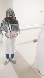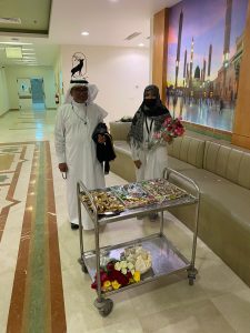 وقدمت الأستاذة عائشة النبيهي المبادرة بمعايدة المرضى وتقديم الورد والهدايا والحلويات العيدية لرفع المعنويات والعاملين فى القطاع الصحى لمجمع الملك سلمان ، وخاصة العاملين الذين تركوا أهلهم واحتفلوا بالعيد فى مقر عملهم لخدمة المرضي.