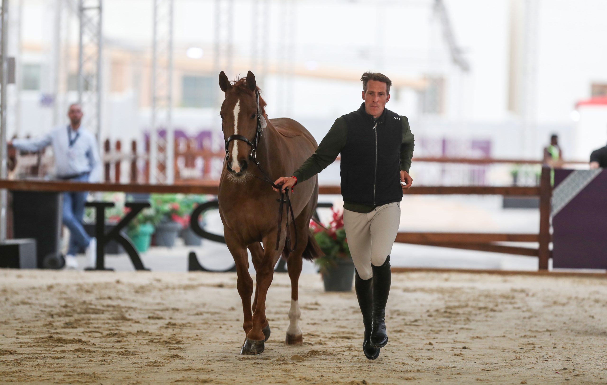 فحص جياد كأس العالم لقفز الحواجز والترويض والفرسان يجرون تدريبهم الأول