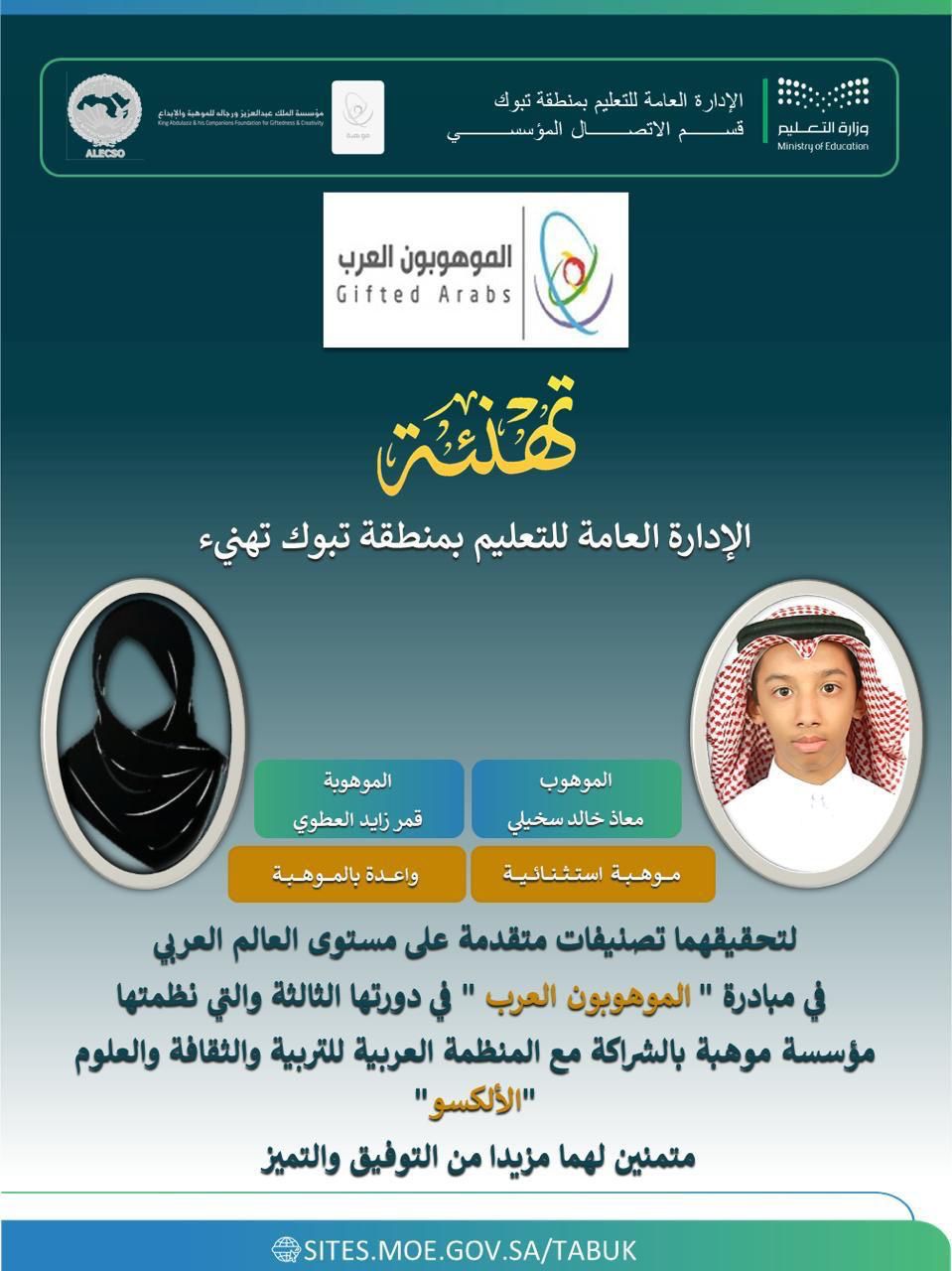 تعليم تبوك يحقق تصنيفات متقدمة ضمن مبادرة “الموهوبون العرب”