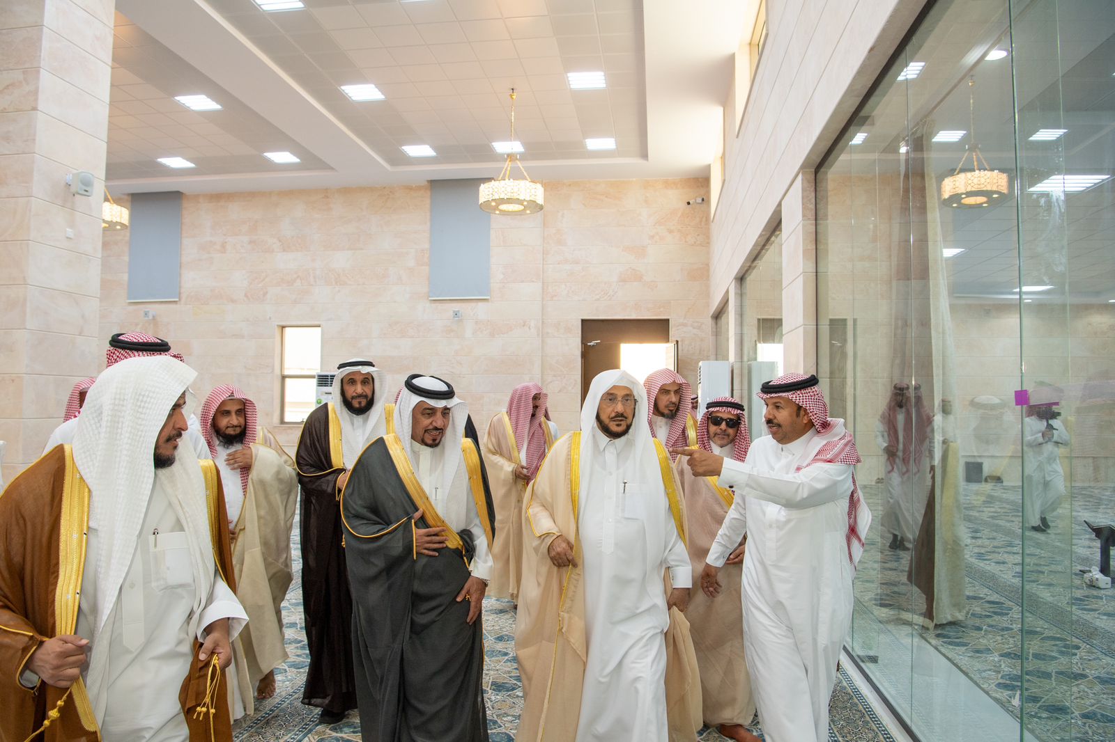 وتجوّل معاليه بأرجاء الجامعين ومرافقهما، واستمع لشرح مفصل عن إنشاءهما على الطراز المعماري السلماني، وعلى ما تشتمل عليه من مرافق وخدمات وأبرز المراحل التي مرت بها.
