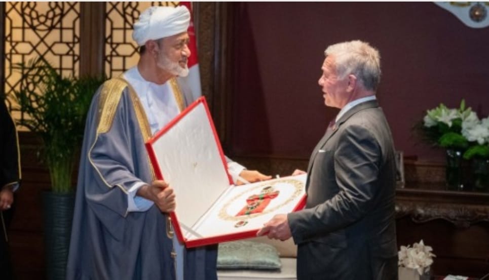 تسلم جلالة الملك عبدالله الثاني من جلالة السلطان هيثم بن طارق، سلطان عُمان، الأربعاء، وسام آل سعيد، وهو أرفع وسام عُماني، تقديرا لجلالته واعتزازا بعمق الروابط الأخوية المتينة بين البلدين.