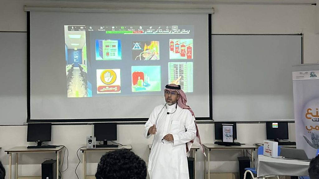 حيث هدفت الورشة إلى نشر الوعي بأهمية إدارة المخاطر في البيئة التعليمية ، تعريف المشاركين بوسائل الأمن والسلامة في معمل الحاسب الآلي ، تدريب المشاركين على كيفية تقييم المخاطر والتعامل معها و تعريف المشاركين بأنظمة الإنذار الحديثة وأنظمة الإطفاء.
