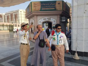 تقدم جمعية الكشافة العربية السعودية خدمات متميزة وجليلة لحجاج بيت الله الحرام بالمدينة المنورة ، حيث يقوم الكشافة بالمنطقة المركزية وبساحات المسجد النبوي الشريف بمساعدة الحجاج كبار السن والعاجزين من خلال إيصالهم من والى المسجد النبوي عبر عربات متحركة ، كذلك إرشاد الحجاج التائهين إلى مقار سكنهم وكذلك تقديم مساندة لهم في المراكز الصحية التي تحيط بالمسجد النبوي في صور إنسانية وخدمات شرفية تعكس الصورة الجميلة للخدمات التي تقدمها الدولة حفظها الله .