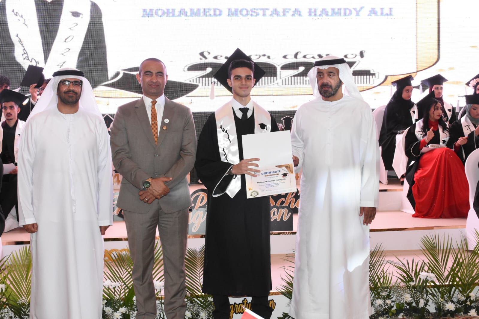 برعاية وحضور سعادة الشيخ الدكتور سالم محمد بن ركاض العامري احتفلت مدرسة الإمارات الخاصة في مدينة العين بتخريج الدفعة 34 من طلاب وطالبات الثانوية العامة، دفعة “عام الاستدامة 2024″، البالغ عددهم 95 خريجاً وخريجة، كما حضر الحفل الذي أقيم في قاعة زاخر بفندق العين روتانا، سعادة الشيخ سالم حمد بن ركاض عضو المجلس الوطني الاتحادي والشيخ حمد سالم بن محمد بن ركاض وسعادة الرائد خالد العزيزي، والدكتور خالد منصور مدير مدرسة الإمارات وعدد من الشخصيات التربوية، كما حضر الحفل أعضاء الهيئتين الإدارية والتعليمية وأولياء أمور الخريجين من الآباء والأمهات.