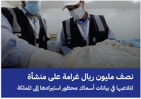 فرضت الهيئة العامة للغذاء والدواء ، غرامة مالية قيمتها (500) ألف ريال على منشأة في منطقة القصيم ، تلاعبت ببيانات أحد أصناف الأسماك المحظور استيرادها إلى المملكة، بغرض بيعها في السوق السعودي.