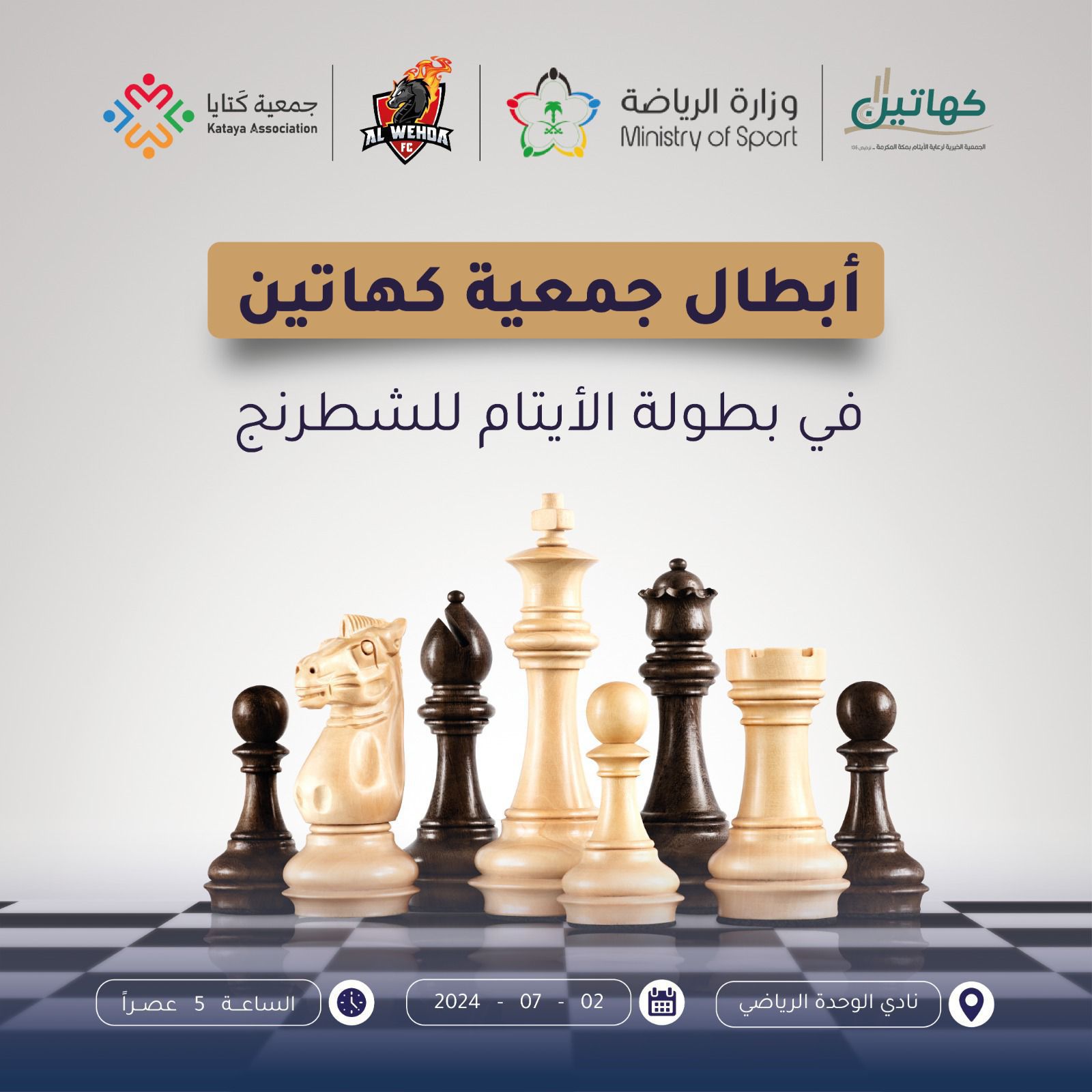 تشارك الجمعية الخيرية لرعاية الأيتام بمكة المكرمة “كهاتين” بـ45 متسابقًا/ـة في بطولة الأيتام للشطرنج، تحت إشراف وزارة الرياضة وبالتعاون مع جمعية “كتايا” للرياضات الذهنية التي ينظمها نادي الوحدة بمكة المكرمة، بدءًا من يوم الثلاثاء الموافق 2 يوليو لمدة 5 أيام بمقر نادي الوحدة.