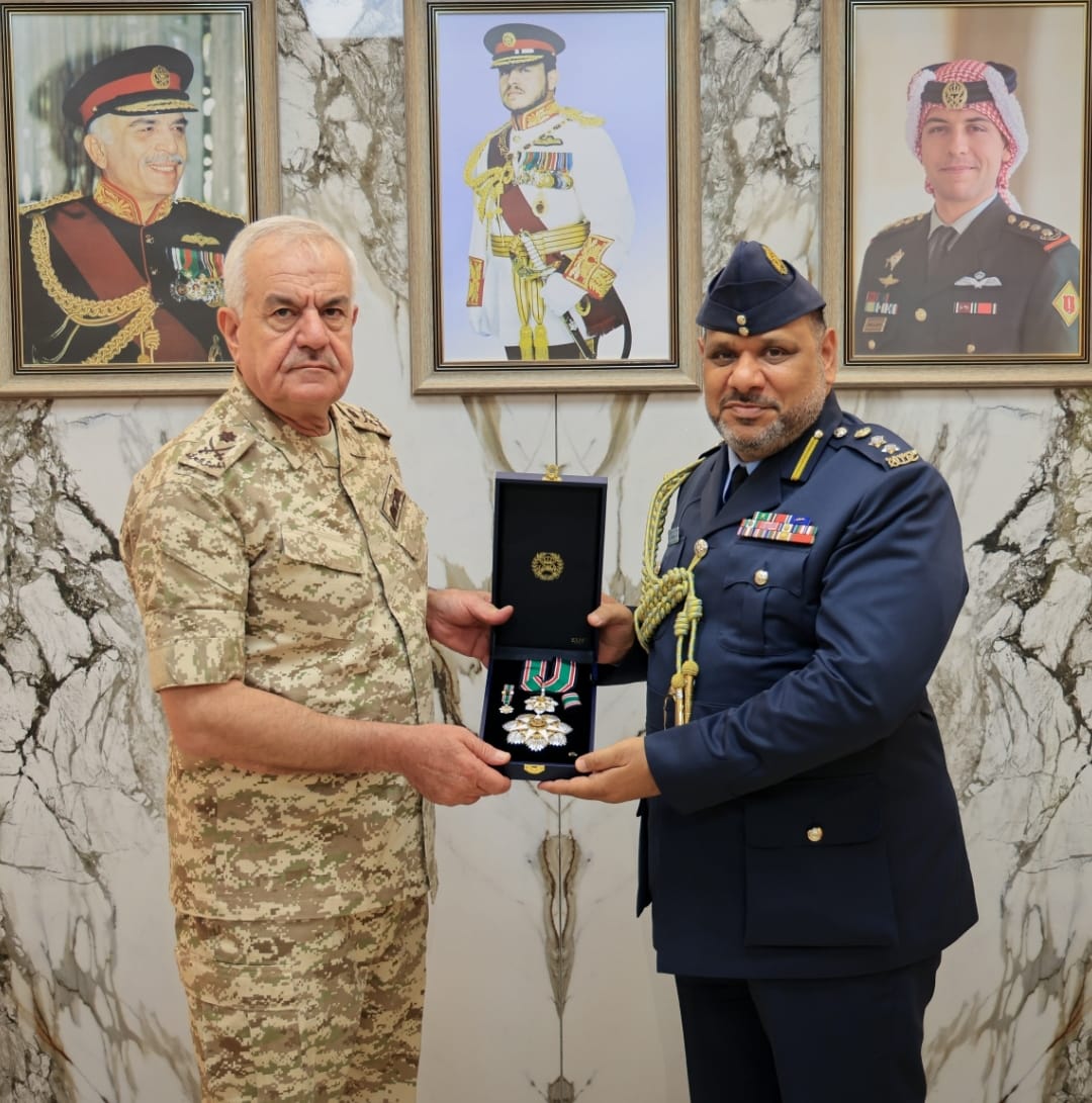 من جانب آخر، تسلم الملحق العسكري العماني العقيد الركن جوي سالم بن عبدالله العبيداني من رئيس هيئة الأركان المشتركة الاردنية اللواء الركن يوسف أحمد الحنيطي
