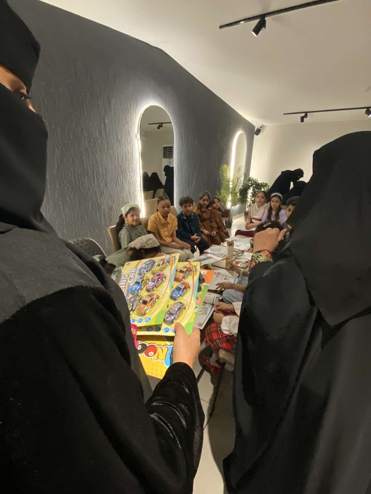 وعقد ورش عمل للأطفال لتلوين كراسات برنامج قيم نبراس ومناقشة الاطفال المشاركين في القيم وأمهاتهم