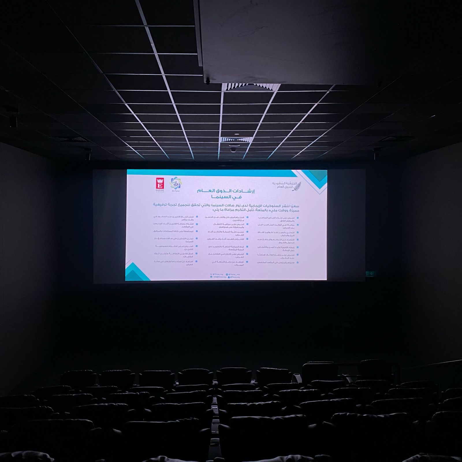 سعيًا لنشر السلوكيات الإيجابية لدى مرتادي صالات السينما، بما يضمن للجميع تجربة ترفيهية مميزة، تعمل الجمعية السعودية للذوالذوقياتبالتعاون مع شركات السينما على نشر وتعزيز الإرشادات الذوقية في صالات السينما المختلفة، وذلك ضمن برنامج “السينما والمسرح”، الذي أطلقه ودشنه صاحب السمو الملكي الأمير سعود بن نايف بن عبدالعزيز آل سعود – أمير المنطقة الشرقية – الرئيس الفخري للجمعية.