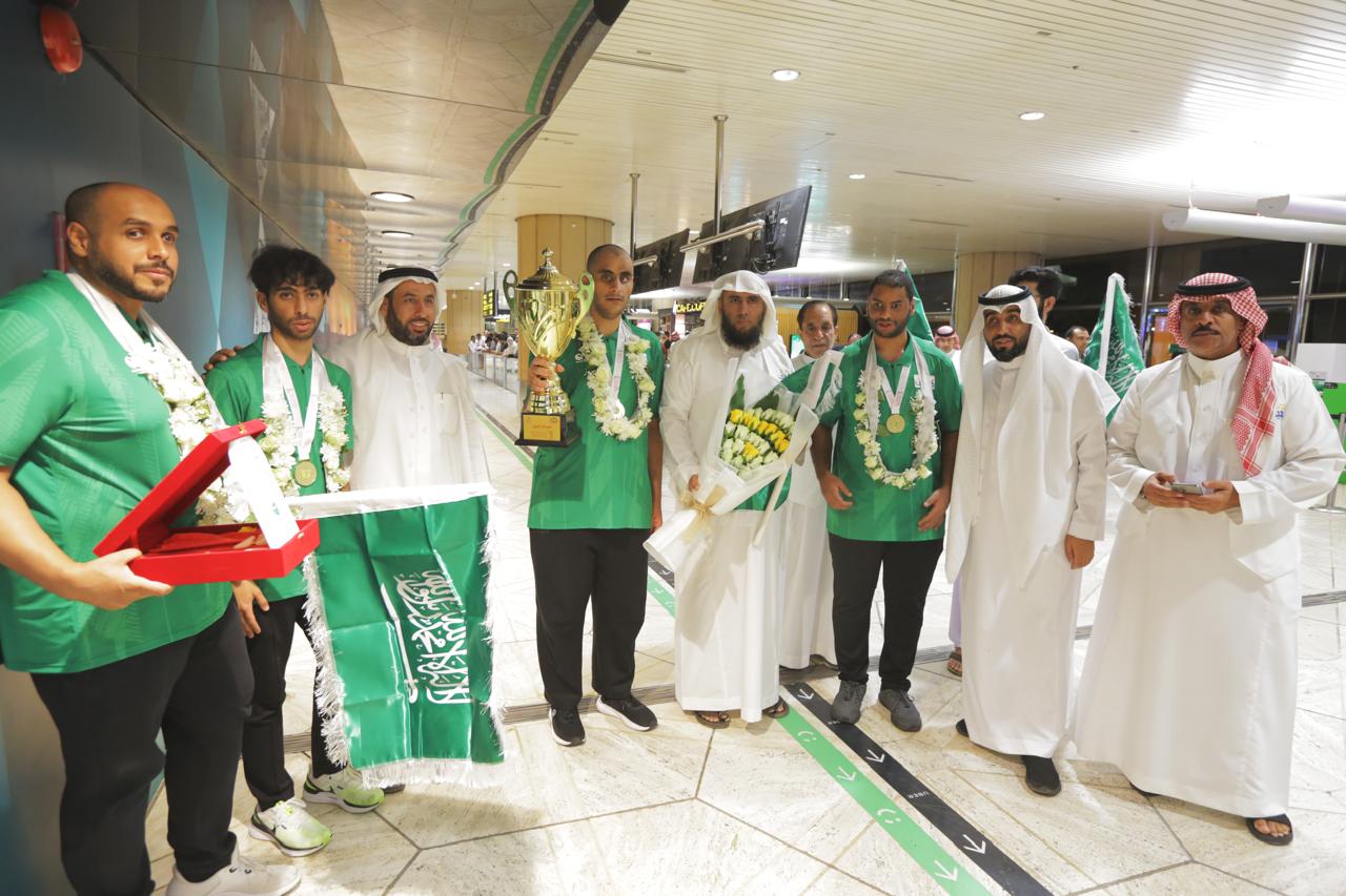 استقبل اعضاء مجلس ادارة ومنسوبي جمعية “كفيف” يتقدمهم المدير التنفيذي بالجمعية بالإنابة الاستاذ على الشهري ومدير العلاقات العامة والاعلام الاستاذ عبدالمحسن القشعمي وعدد من الإعلاميين فريق كرة الهدف بالجمعية “كفيف ” بعد وصولهم لمطار الملك خالد الدولي بالرياض وذلك بعد تحقيقهم المركز الأول وكأس بطولة تحدي الجمعيات والأندية الخليجية والتي أقيمت في مسقط بدولة عمان الشقيقة ، حيث استطاع النجوم تحقيق الفوز فى المباراة النهائية على المنتخب القطري بنتيجة (9- 4 )وبعد نهاية المباراة توج رئيس اللجنة البارالمبية العمانية ورئيس مجلس إدارة جمعية النور بعمان نيابة عن صاحب السمو السيد فهر بن فاتك بن فهر آل سعيد، وبحضور القائم بالأعمال في السفارة السعودية في سلطنة عُمان الاستاذ/ يوسف محمد العودة الفائزين بالمراكز المتقدمة ، وقد حظي الوفد المشارك المكون من أ. إبراهيم الخنيفر رئيساً للوفد، واللاعبون: الوليد كعبي وإبراهيم المحياء ومبارك الشهراني ومحمد الحسياني ويزيد البطي.بحسن الحفاوة والاستقبال من القائمين بمطار الملك خالد الدولي ومن وسائل الإعلام المختلفة خاصة من هيئة الاذاعة والتلفزيون ممثلة بالقنوات السعودية وكذلك مراسلي الصحف المختلفة.