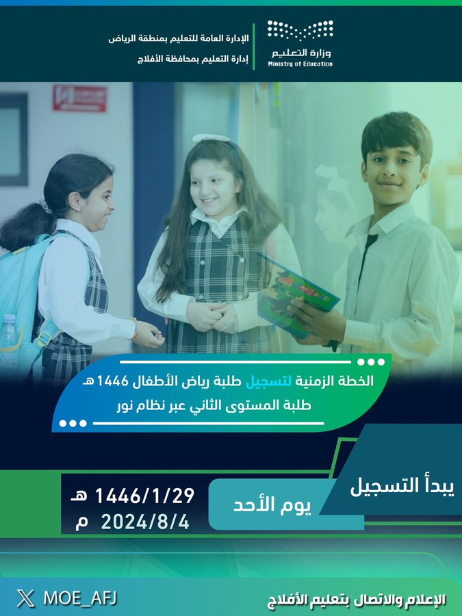 الأحـد القادم .. بـدء تسجيل طلاب وطالبات ” المستـوى الثانـي ” في مرحلة رياض الاطفال