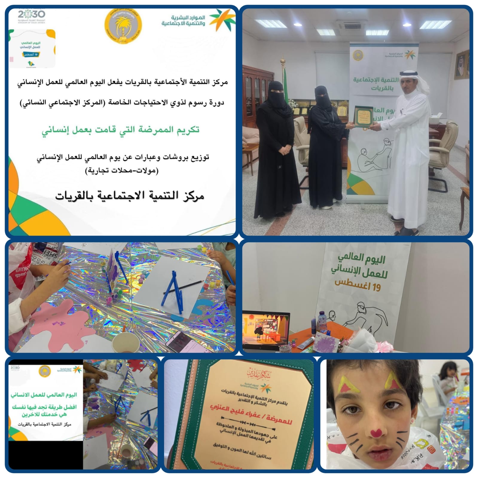 مركز التنمية الاجتماعية بالقريات يفعل اليوم العالمي للعمل الإنساني