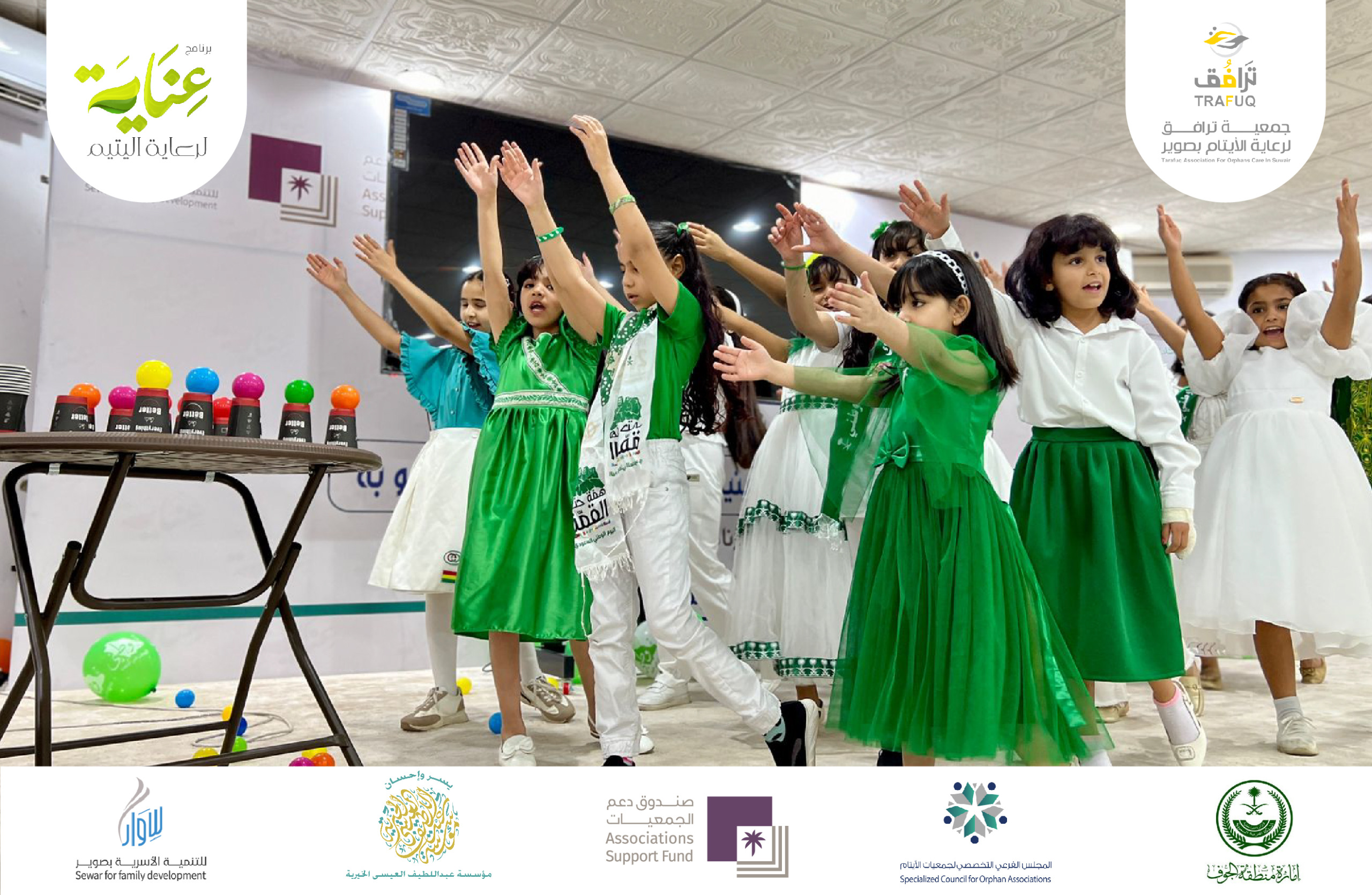 أقامت جمعية ترافق لليتيمات بمحافظة صوير برنامج (فرحة وطن) بمناسبة اليوم الوطني ٩٤بالتعاون مع مركز عبدالرحمن السديريالثقافي،و جمعية سوار للتنمية الأسرية ،ومركز شؤون الأسرة بمحافظة صوير ،وهذا البرنامج يأتي ضمن الأنشطة لبرنامج عناية، الذي أقيم هذا العام لأيتام ويتيمات جمعية ترافق؛ يهدف برنامج (فرحة وطن) إلى تعزيز الانتماء لهذا الوطن، وتشجيع المستهدفات على مشاركة المجتمع مشاعرهم لهذا اليوم المجيد والمساهمة في بناء وطنهم، كما أنه يهدف إلى دمج المستهدفين مع مع أقرانهم. الجدير بالذكر أن برنامج عناية لليتيمات التايع للمجلس الفرعي التخصصي للأيتام و برعاية من مؤسسة العيسى الخيريةيحتوي برنامج عديدة ومجالات فريدة تهدف إلى تعزيز القيم الإيمانية والوطنية والسلوكية والمهارات الاجتماعية واللغوية والمهارية والعقلية والقيادية واستثمار طاقاتهن واكتشاف قدراتهن ومهاراتهن طريق شرح أحد عشر مجالايحتوى على المهارات المعرفية المتنوعة. وقد أقيم برنامج( فرحة وطن)تعزيزا لهذه الأهداف.