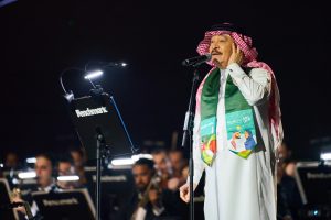 اكمل الفنان خالد عبدالرحمن وصلته بمجموعة من اشهر اغانية، ” الحب الكبير، انتظرته، أنادي، خدي نظر، ليتك لعيني قريبة، واختتم وصلته بالأغنية الوطنية “مسلم عربي سعودي قائد الأمة”.