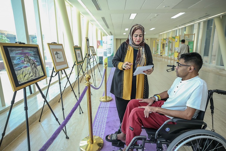 والتقيت بوالد الفنان جاسم، الأستاذ علي جاسم سيد الذي قال: لوحات ولدي جاسم رائعة أحبهم “فهم أحفادي”، لي أمنية واحدة في هذه الحياة هي أن أرى ولدي جاسم بكامل الصحة والعافية وأن يجد له متبرع بالقلب والرئة بأسرع وقت ممكن، أشكركم على الحضور وعلى اللقاء، وأشكر مؤسسة وريف الخيرية التي حققت أمنية إبني جاسم الحبيب، كما أشكر جائزة الشيخ محمد بن صالح بن سلطان على دعمها وعلى حضورها المؤثر في المعرض.