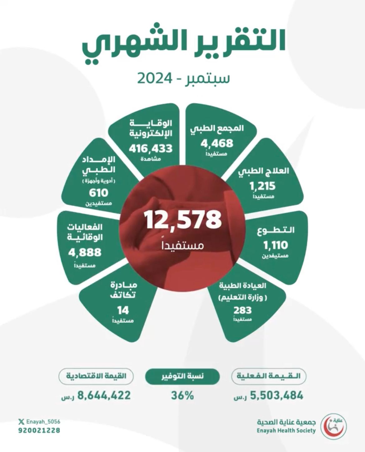 أكثر من 12 ألفاً استفادوا من خدمات عناية الصحية بقيمة اقتصادية تجاوزت الـ 8 ملايين ر. س خلال شهر سبتمبر 2024م