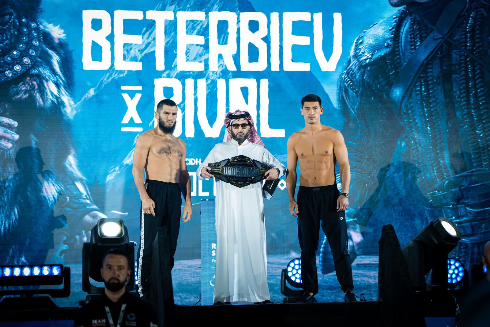وكان الوزن الرسمي بين أرتور بيترفبيف ودميتري بيفول الأكثر جذبًا للأنظار، حيث تبادلا النظرات الحادة في لقاء وجه لوجه قبل النزال الذي سيجمعهما على لقب بطل العالم في الوزن الخفيف الثقيل.