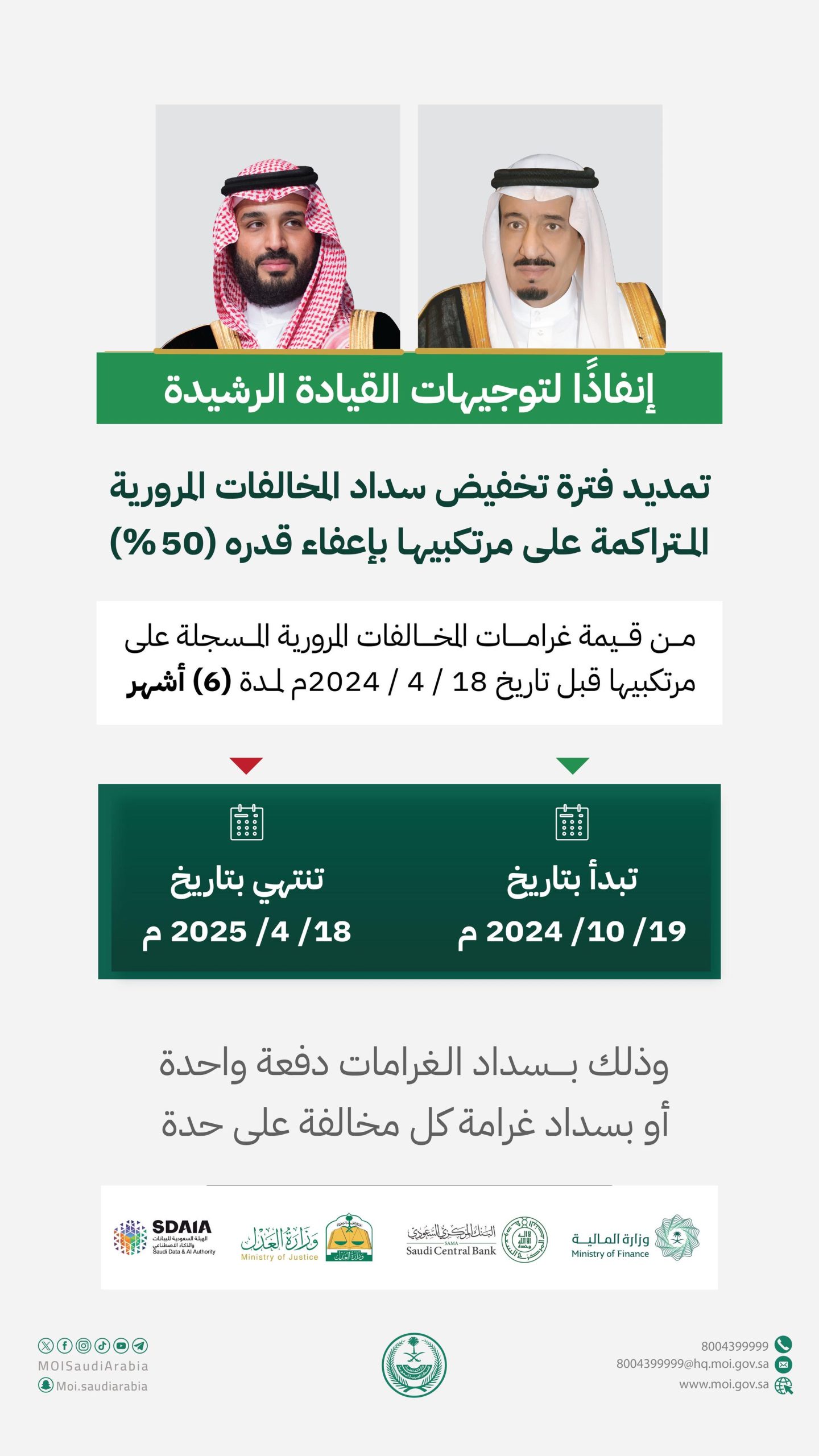 الرئيسية/أخبار المحلية/إنفوجرافيك : إنفاذًا لتوجيهات القيادة الرشيدة .. تمديد فترة تخفيض سداد غرامات المخالفات المرورية المتراكمة على مرتكبيها لمدة (6) أشهر. أخبار المحلية إنفوجرافيك : إنفاذًا لتوجيهات القيادة الرشيدة .. تمديد فترة تخفيض سداد غرامات المخالفات المرورية المتراكمة على مرتكبيها لمدة (6) أشهر. إدارة النشر17 أكتوبر، 2024 1٬003 فيسبوك X ماسنجر ماسنجر واتساب تيلقرام العنود العنزي ـ متابعات إدارة النشر17 أكتوبر، 2024 1٬003 فيسبوك X ماسنجر ماسنجر واتساب تيلقرام شاركها فيسبوك X ماسنجر ماسنجر واتساب تيلقرام مشاركة عبر البريد