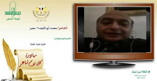 دعا الدكتور هشام عزمي الأمين العام للمجلس الأعلى للثقافة و الدكتور محمد أبو الفضل بدران مقرر لجنة الشعر بالمجلس إلى متابعة فعاليات برنامج “كل يوم شاعر” الذي تنظمه لجنة الشعر بالمجلس، ونلتقى خلالها مع (الشاعر/ محمد أبو الليف – مصر) والذى قام بإلقاء قصيدتين بعنوان: (خليها عليا _ عقبة) ، وذلك في تمام الساعة السادسة مساء أمس الأربعاء الموافق 17 فبراير الحالى.