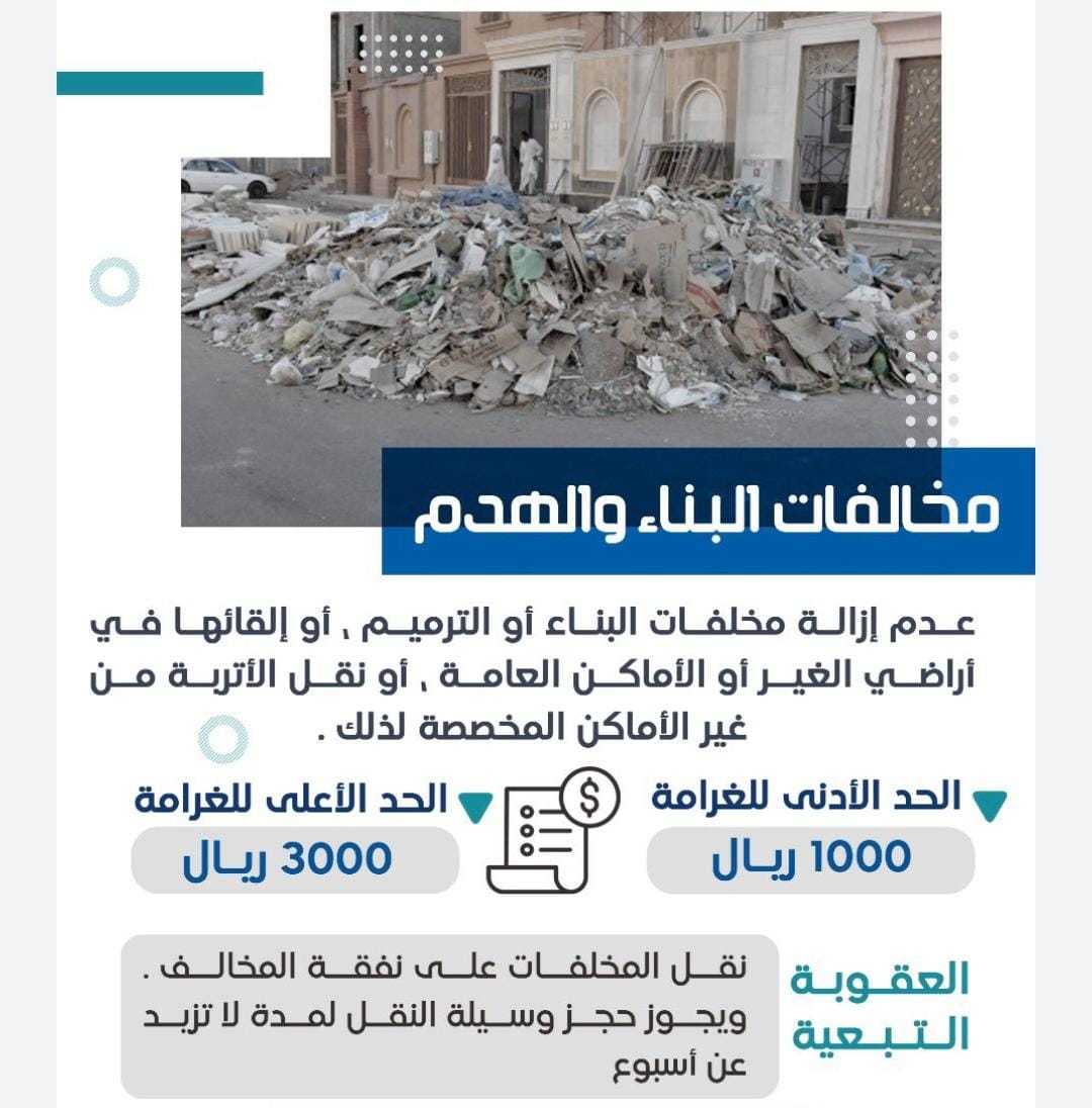 ثلاثة آلاف ريال غرامة وحجز وسيلة النقل عقوبات تنتظر مخالفي لائحة البناء والهدم