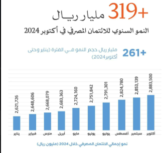 الائتمان المصرفي السعودي يسجّل نموًا خلال عام بأكثر من 319 مليار ريال بنهاية أكتوبر