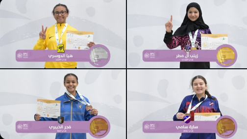 وفي منافسات تحت 14 عاماً، نالت ليلى عبيد (الهلال) الميدالية الذهبية في سلاح الأبية ، وظفرت سلمى المهنا (النهضة) بذهبية سلاح الشيش، فيما حققت زينب آل مطر (الهدى) الميدالية الذهبية في سلاح السيبر.