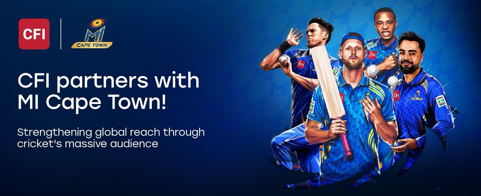يسرّ مجموعة CFI، الوسيط العالمي الرائد للتداول عبر الإنترنت، أن تعلن عن رعايتها كشريك التداول الرسمي لفريق MI Cape Town، الفريق المتميّز في عالم الكريكيت. ويأتي هذا التعاون كخطوة استراتيجية جديدة في مسار CFI نحو التوسع العالمي، بعد عامٍ حافلٍ بالإنجازات الرائعة، أبرزها تخطي حجم التداول السنوي للمجموعة لأكثر من تريليون دولار أمريكي وافتتاح فروع جديدة في جنوب إفريقيا.