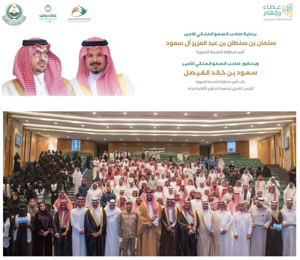 في حفل بهيج وملهم برعاية صاحب السمو الملكي الأمير سلمان بن سلطان بن عبدالعزيز آل سعود، أمير منطقة المدينة المنورة، وحضور صاحب السمو الملكي الأمير سعود بن خالد الفيصل، نائب أمير المنطقة، كرم سموه فريق أكاديمية تطوير الذات التطوعي تقديراً لجهودهم المتميزة في العمل التطوعي خلال عام 2024.