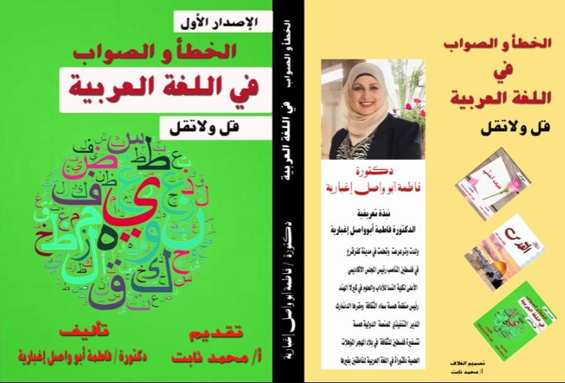 صدر للدكتورة فاطمة اغبارية كتاب الخطا والصواب في اللغة العربية وذلك سعيا لاستقامة اللسان لمن لا يجيدون العربية فإن من أسرع الوسائل لتحقيق ذلك هو أسلوب ( قل ولا تقل) ، حيث نستبدل بالعبارة الخطأ عباراةً صحيحة ولذا فقد قامت كاتبتنا بجمع الكثير من هذه العبارات في هذا الكتاب لمساعدة المغتربين والمقيمين في بلدان غير عربية.
