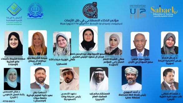 برعاية كريمة من سمو الشيخة انتصار الصباح ، ورئاسة فخرية من سمو الأميرة نوف بنت عبد الرحمن بن ناصر بن فرحان آل سعود و بمشاركة سيادة الشريفة بدور بنت عبد الإله ال ربيعان ، و معالي الشيخة د.أسماء مانع العتيبة ، ووزيرة المرأة د.هيفاء الآغا . وبحضور شخصيات اعتبارية على مستوى الوطن العربي ، تقيم أكاديمية الريادة للتنمية المستدامة بمشاركة جامعة الحسن الثاني وبالتعاون مع مركز سبائك للتعليم و التدريب و مع عدة جهات دولية مؤتمر الذكاء الاصطناعي في ظل (الأزمات) تحت شعار ( سيناريوهات رقمية لإدارة الأزمات , وذلك عبر تقنية زوم في الفترة 20 – 21/ 1/ 2025.