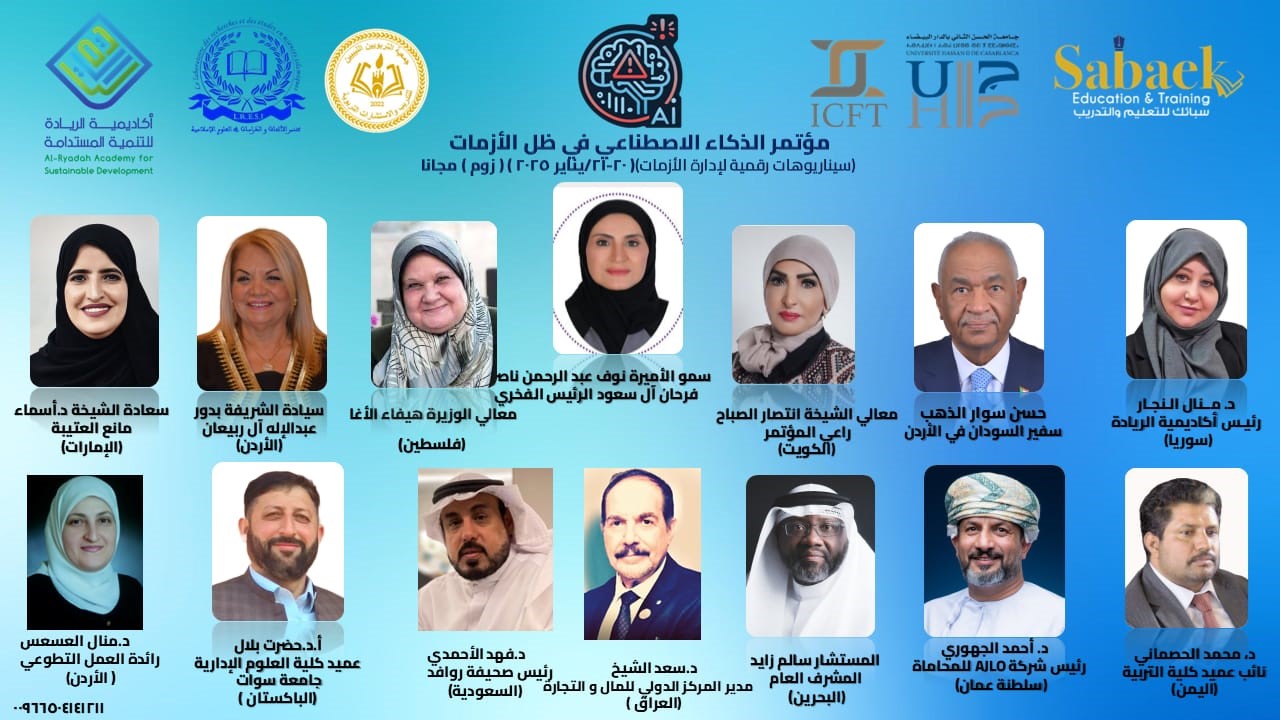 اختتمت يوم الثلاثاء ٢١/١/٢٠٢٥ فعاليات (مؤتمر الذكاء الاصطناعي في ظل الأزمات) تحت شعار(سيناريوهات رقمية لإدارة الأزمات ) الذي أقامته أكاديمية الريادة للتنمية المستدامة بالتعاون مع مركز سبائك للتعليم والتدريب في البحرين و جامعة الحسن الثاني ومركز الدراسات والبحوث في المغرب ومركز كورسيول في تركيا و المركز الدولي للمال و التجارة في العراق و جمعية التربويين الليبيين.