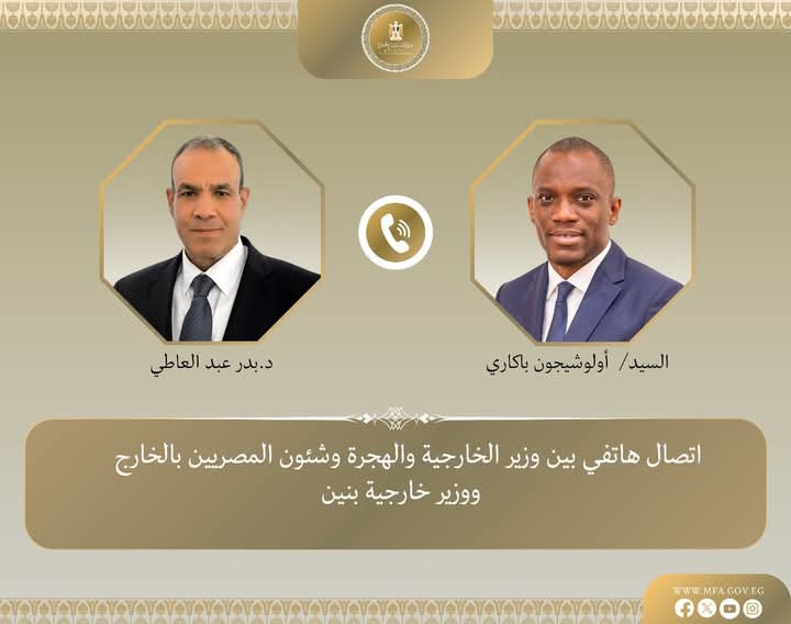 تلقى د. بدر عبد العاطي، وزير الخارجية والهجرة، يوم ٨ مارس، اتصالًا هاتفيًا من السيد “أولوشيجون باكاري”، وزير خارجية جمهورية بنين.
