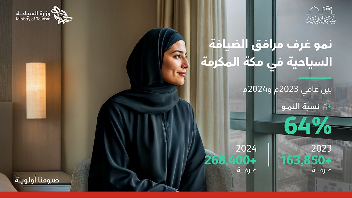 وزارة السياحة تعلن عن تجاوز عدد الغرف المرخصة في مكة المكرمة 268 ألفًا بنسبة نمو 64%