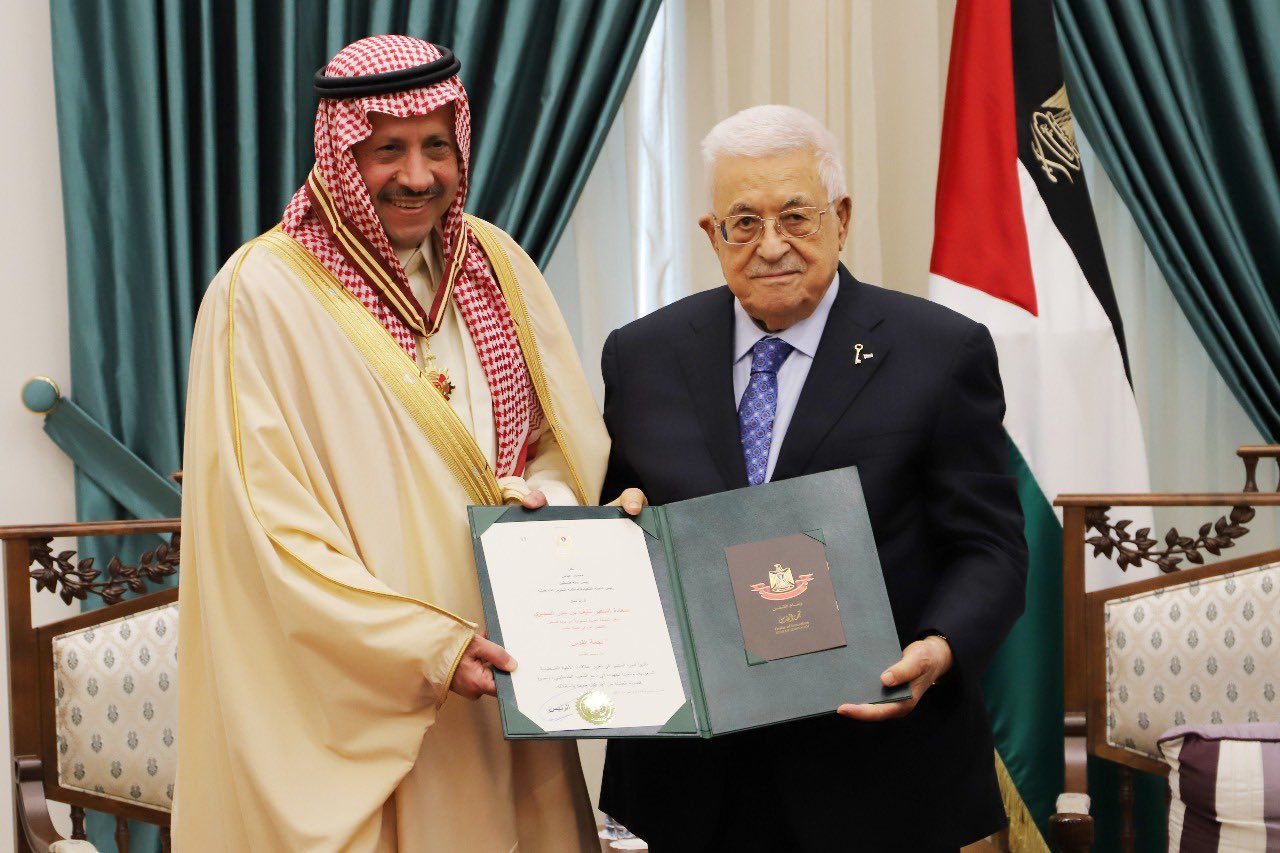 الرئيس الفلسطيني يقلد سفير المملكة وسام نجمة القدس بمناسبة انتهاء مهام عمله