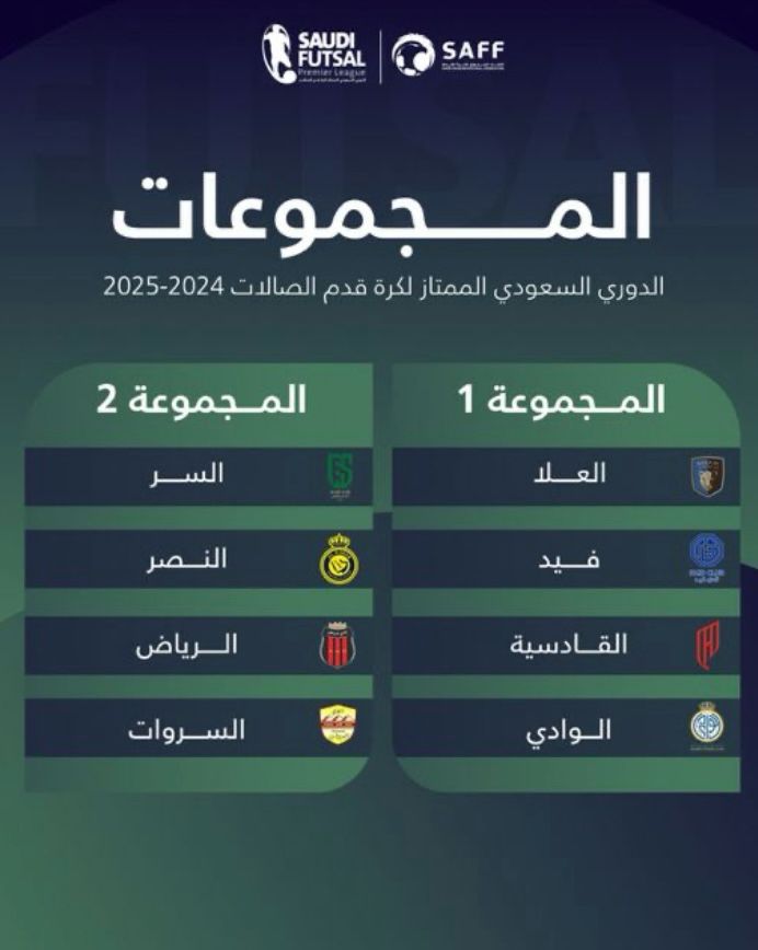 اطلقت الأحد الأدوار النهائية من الدوري السعودي الممتاز لكرة قدم الصالات للموسم الرياضي 2024-2025، بمشاركة أندية العلا، فيد، القادسية، الوادي، السر، النصر، الرياض والسروات.