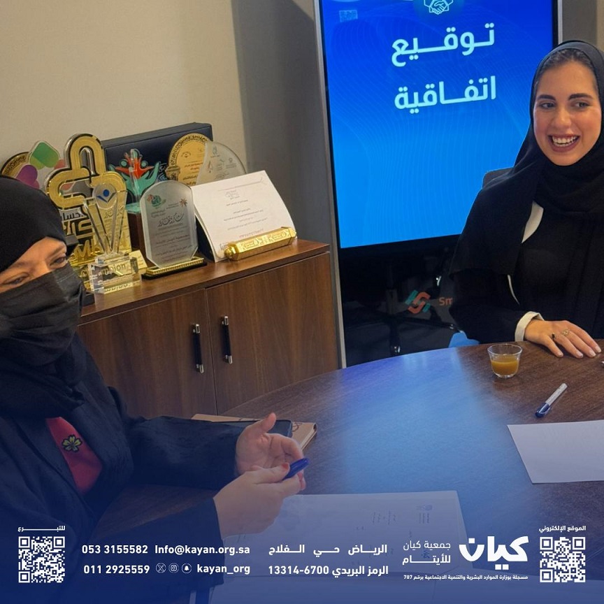 هذا ووقع الاتفاقية كل من الأستاذة “سمها “بنت سعيد الغامدي رئيس مجلس إدارة جمعية كيان الأهلية للأيتام ويشار إليها في هذه الاتفاقية “الطرف الأول “، “علما أن جمعية كيان جمعية غير ربحية مرخصة من المركز الوطني لتنمية القطاع غير الربحي برقم “787 ” وتاريخ 11/09/1437هـ مختصة بخدمة الأيتام ذوي الظروف الخاصة “.