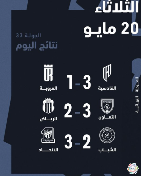 التعاون يتغلب على الرياض في الجولة الـ (33) من الدوري