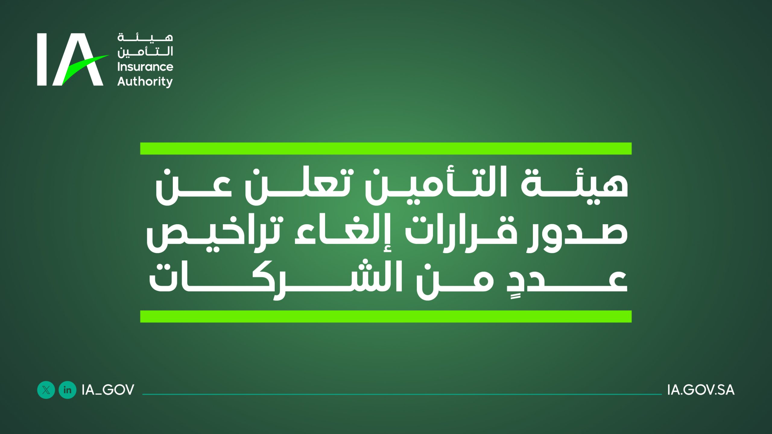 تُعلن هيئة التأمين عن صدور قرارات نهائية بإلغاء تراخيص عددٍ من الشركات استنادًا إلى أحكام نظام مراقبة شركات التأمين التعاوني والقرارات الصادرة تنفيذًا له، ووفقًا للمهام والصلاحيات المناطة بها بموجب تنظيمها. ويأتي ذلك امتدادًا للإجراءات التصحيحة التي أُعلن عنها في تاريخ 28-08-2024م، بما يتوافق مع أهداف الهيئة في شأن دعم وتعزيز فاعلية القطاع واستقراره، ورفع ثقة المتعاملين معه بما يُسهم في حماية حقوق المؤمن لهم والمستفيدين، و ينعكس إيجابًا على الاستقرار المالي.